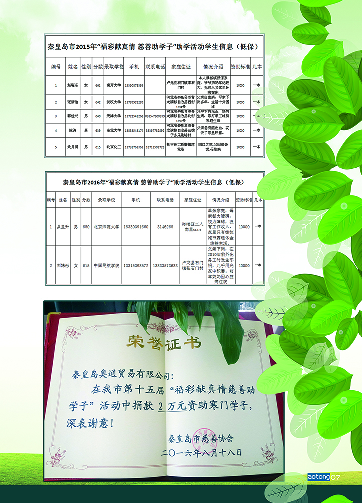 發(fā)放儀式上,臺(tái)上的各位領(lǐng)導(dǎo)向?qū)W生代表發(fā)放了助學(xué)金,向我奧通公司、興龍集團(tuán)等愛心企業(yè)、愛心人士頒發(fā)了榮譽(yù)證書。往屆和應(yīng)屆受助學(xué)生代表分別作了情真意切的發(fā)言,他們表示一定要刻苦學(xué)習(xí)、頑強(qiáng)拼搏,在取得優(yōu)異成績(jī)的同時(shí),積極參加公益活動(dòng),以自己的實(shí)際行動(dòng)感染他人、傳遞愛心、回報(bào)社會(huì)。